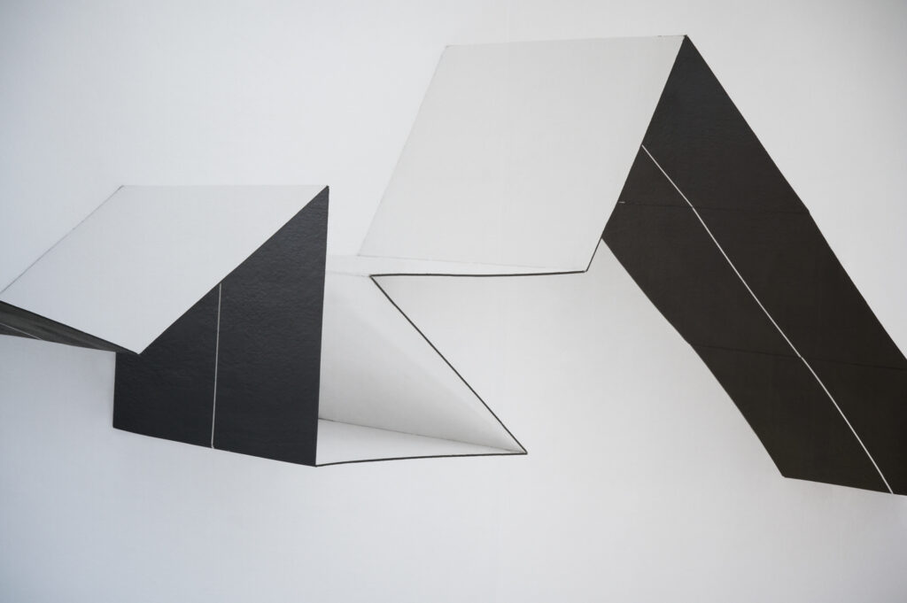 Installationsansicht, „Indizien”, Kunsthaus Graz, 2022, Simona Obholzer: „große simple Linie (stitched)”, Foto: Simona Obholzer